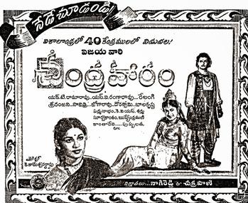 ‘मायाबाजार’ (१९५७) हा तेलुगू चित्रपटांच्या इतिहासात सर्वश्रेष्ठ चित्रपट मानला जातो. के. व्ही. रेड्डी दिग्दर्शित या चित्रपटाने भारतीय पौराणिक चित्रपटांमध्ये एक नवा आदर्श निर्माण केला. ‘पाताळ भैरवी’ (१९५१), ‘चंद्रहारम’ (१९५४) हेही या काळातील महत्त्वाचे चित्रपट होते.